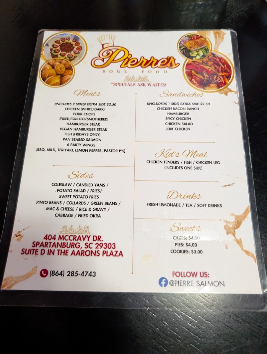 Pierre's Soul Food Menu
